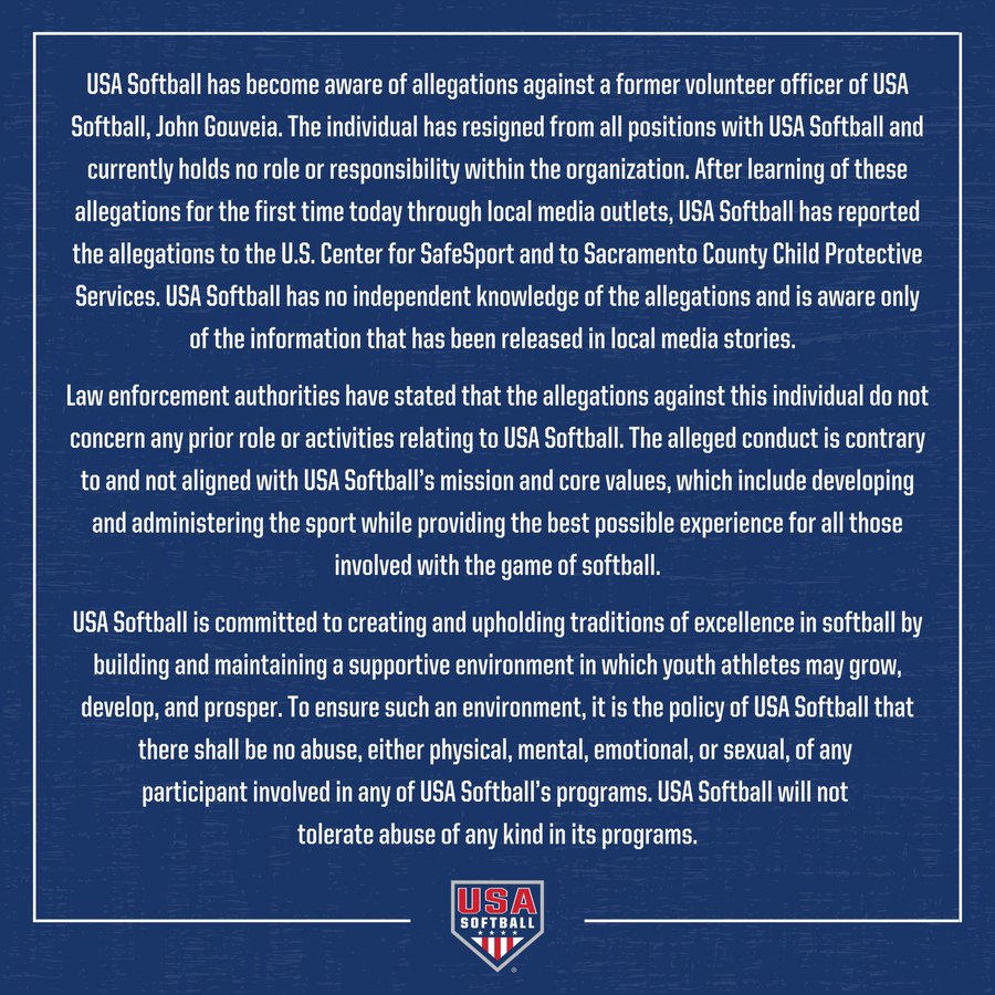 Former Usa Softball President John Gouveia Charged With Sexual Abuse Of A Minor Released On Bail Months Ago